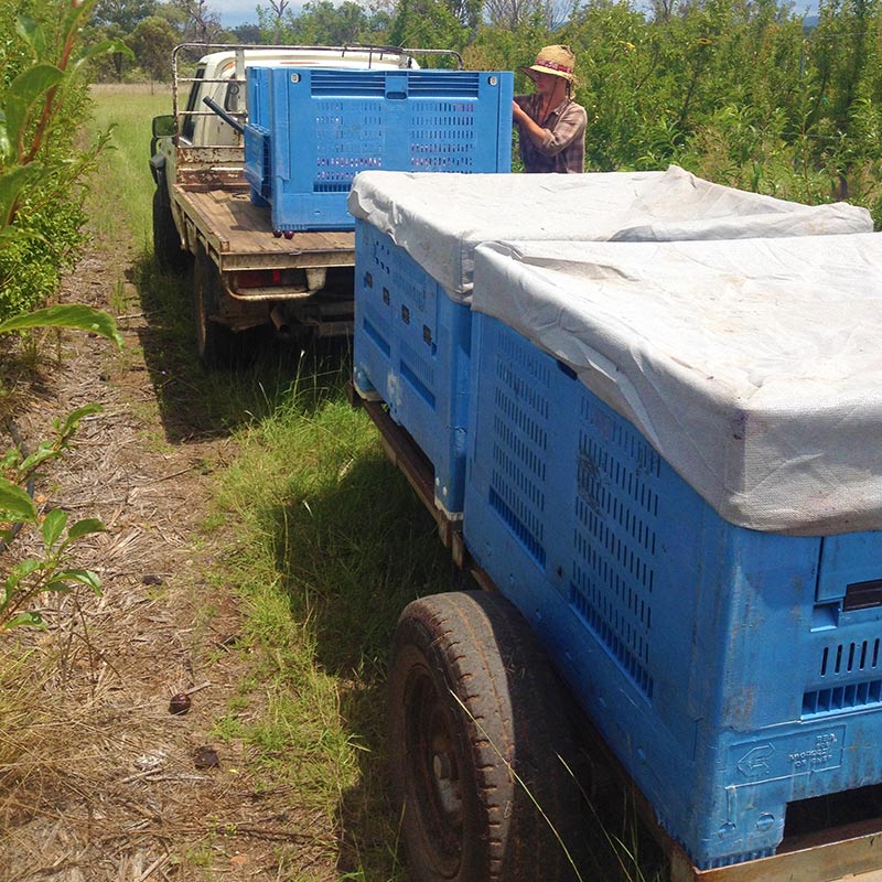 Pallet Bin Covers will protect picked fruit and vegetables from deterioration due to heat and sunlight.  The covers are made from 90% Grey Shade Cloth and have sewn seams with Velcro tabs at the corners to tighten onto the pallet/bin.  Dimensions are 1250mmx1250mmx250mm